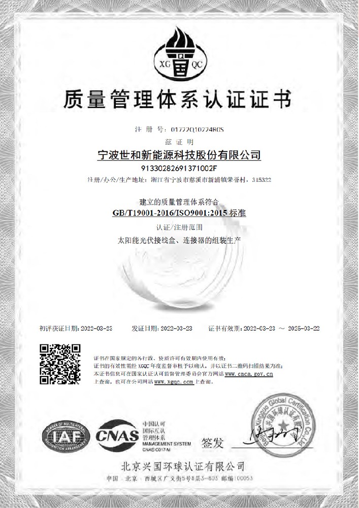 質(zhì)量管理體系認證證書(shū)